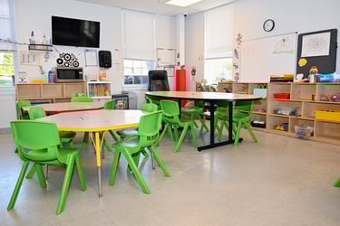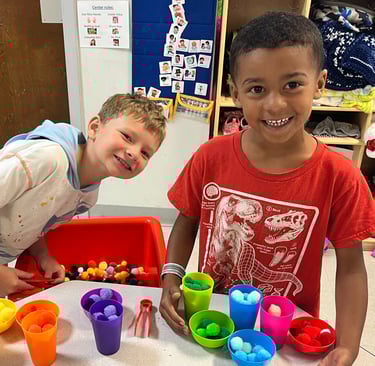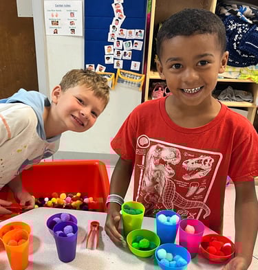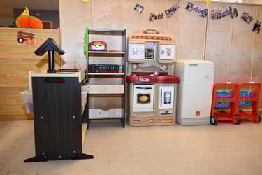 This environment is a time of immense growth. Our focus goes beyond our curriculum to address what school districts desire for incoming students. By the time students leave this room, they are able to write their name, recognize letters and numbers, and complete basic math reasoning. We explore ideas that improve your child's ability to calm themselves including: yoga, breathing exercises, and finding comfort in family photos posted in the calming corner.