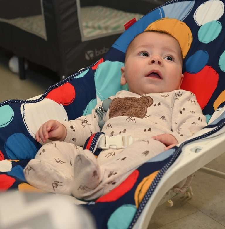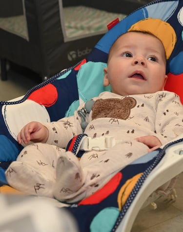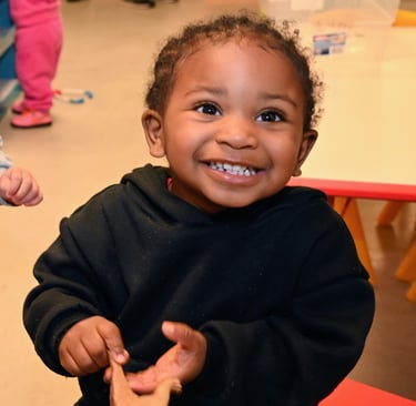 In our Infant Room children are exposed to loving care and learning. They each have their own pack-n-play to sleep in and various individual bins/storage options for food, bottles, diapers, and more. In this room we explore books, music, movement, and a variety of learning activities. Our curriculum is introduced to our children in this room.